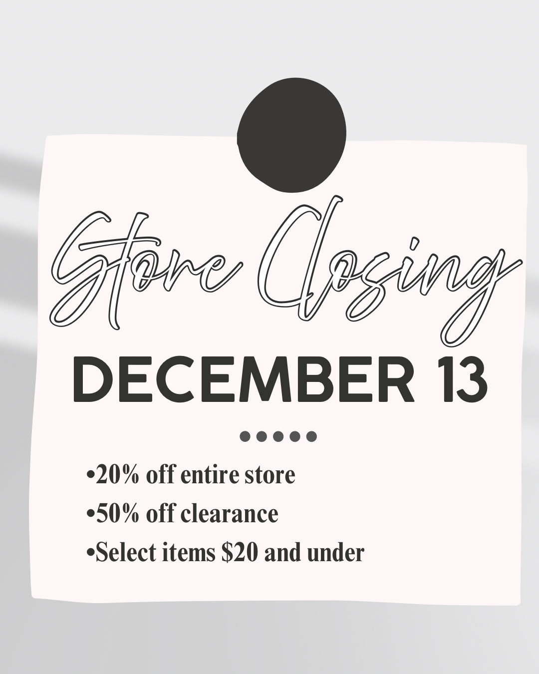 We are transitioning to an online-only model by the end of the year. Public hours run until December 13th, anything after will be by appointment only.