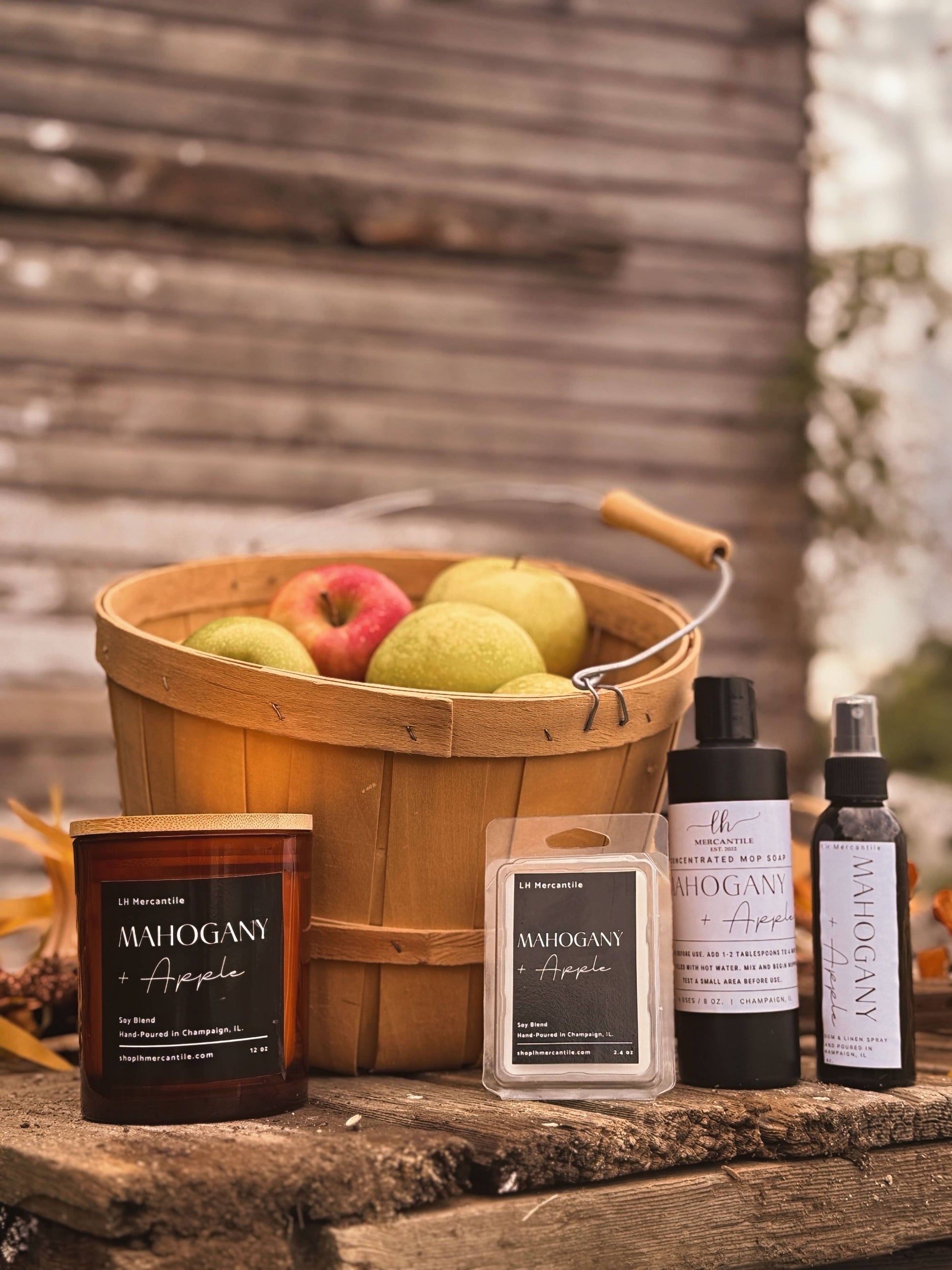 Mahogany + Apple Soy Blend Fall Candle Where crisp orchard air meets smooth woodgrain, Mahogany + Apple is a refined twist on a fall classic. Fresh apple blends with rich mahogany, soft moss, and amber for a cozy yet elevated scent that feels right at home in any space. Housed in an amber glass jar with a natural bamboo lid, this double-wicked candle offers a clean 50-hour burn and strong scent throw. A perfect choice for customers who prefer a more sophisticated, gender-neutral fragrance for fall. Scent Notes: -Autumn Apple -Mahogany, Moss -Amber, Light Musk Also Available in: Wax Melts, Concentrated Mop Soap, and Room & Linen Spray Why Retailers Love It: A customer favorite for its cozy, cologne-like profile. Its unisex appeal, upscale look, and transitional scent make it a strong seller from early fall through the holidays.