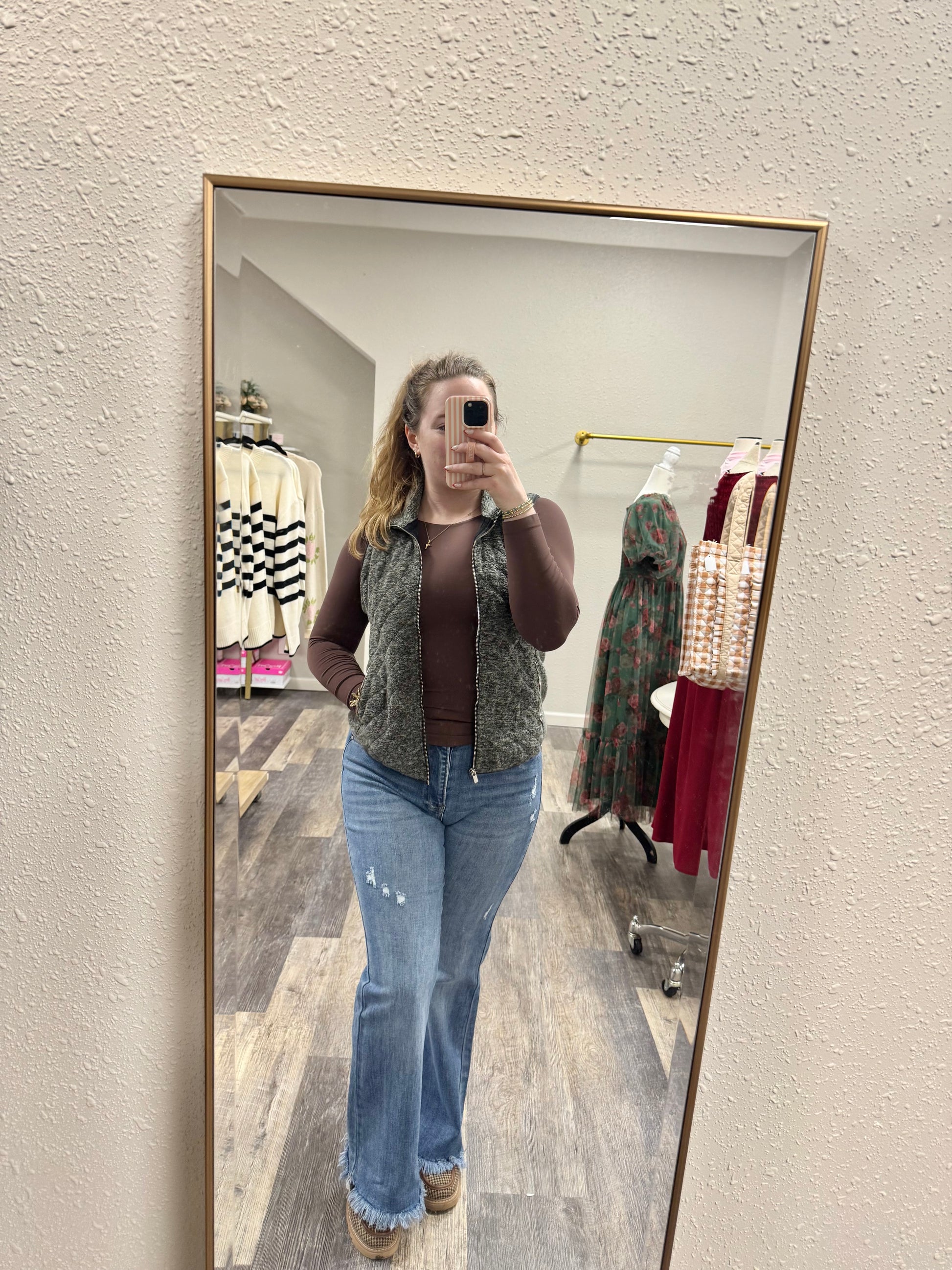 Ā Elevate your style with our Risen High Rise Vintage Hem Bootcut jeans. The high rise waist creates a flattering silhouette while the vintage raw hem adds a unique touch. The medium wash and bootcut style complete the timeless look. Upgrade your denim game now!